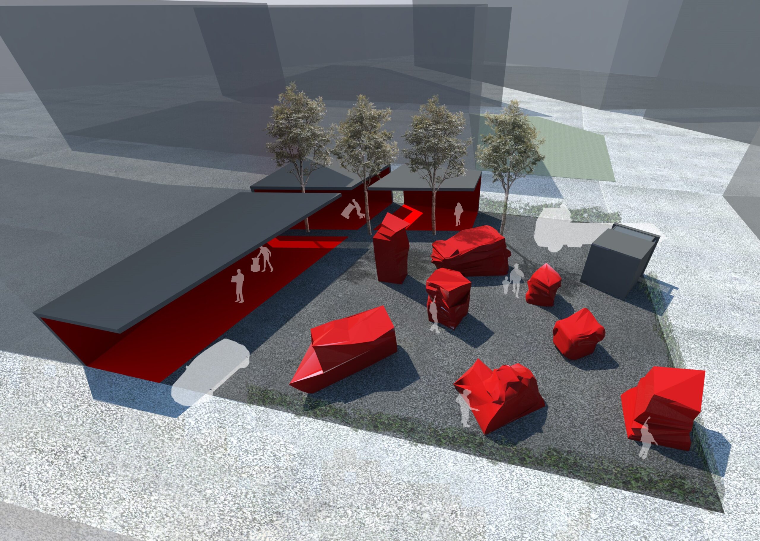 Chadio K., Koutsonanou A., Liana A., Skordas S., Tragias V., “Green Point +θλιψη”, Panhellenic Architectural Competition, Diadyma 3R. Reduce – Reuse – Recycle, Kozani, 2015